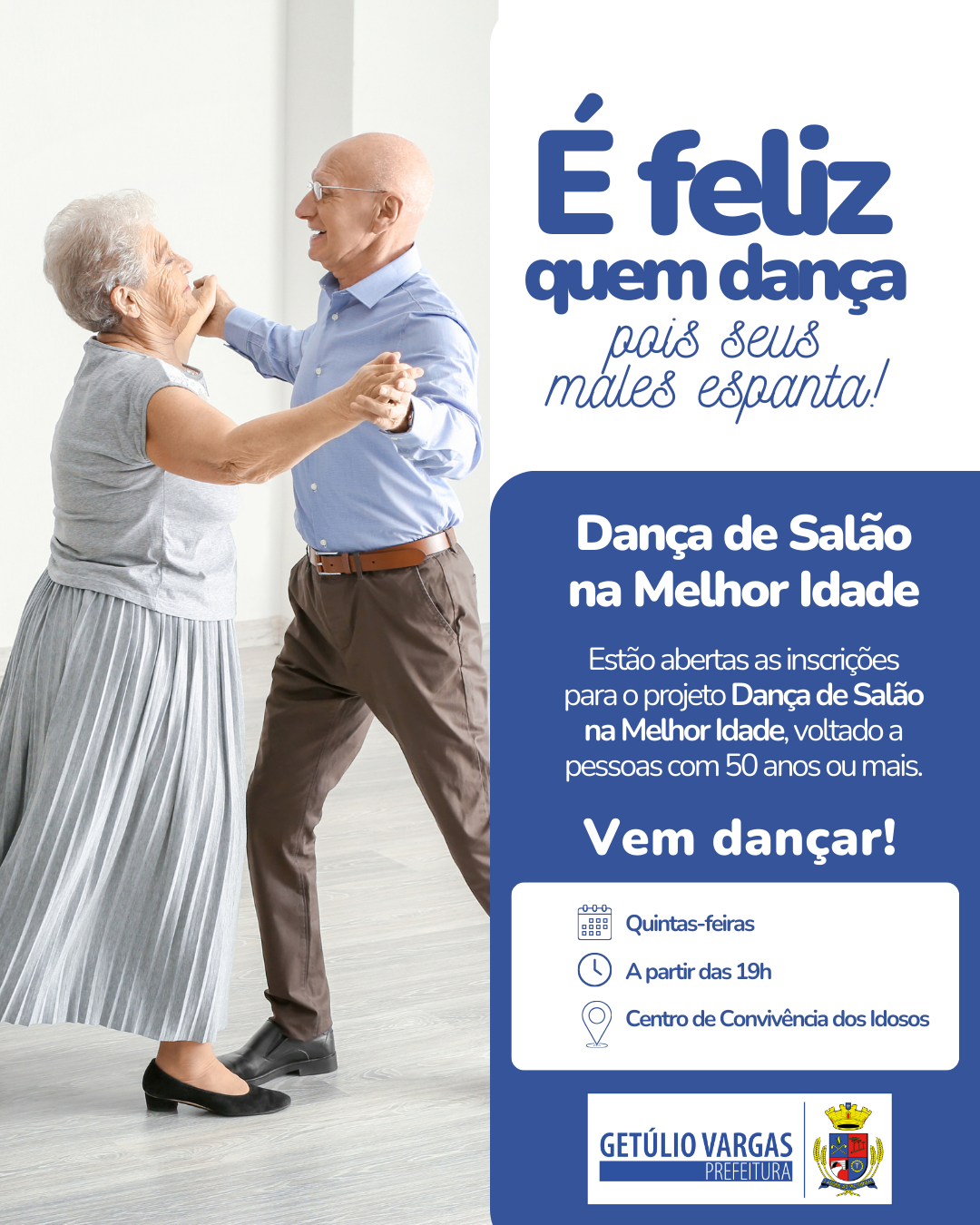 O Centro de Referência de Assistência Social (CRAS), em parceria com a Coordenação da Melhor Idade de Getúlio Vargas, está promovendo o projeto “Dança de Salão na Melhor Idade”, iniciativa voltada à promoção da saúde, do convívio social e da qualidade de vida da população com 50 anos ou mais.