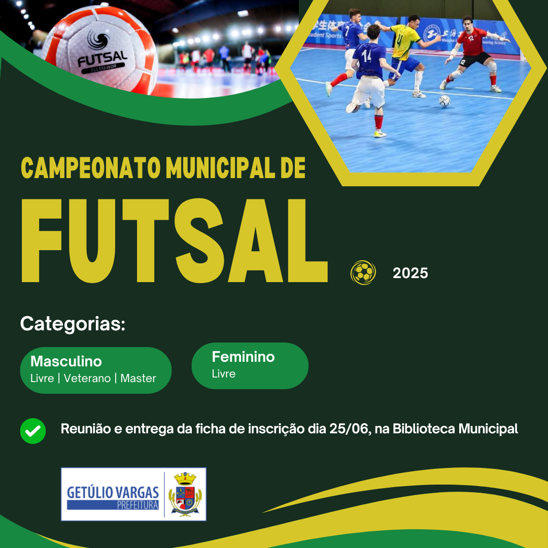 A Prefeitura de Getúlio Vargas, por meio do Departamento de Desporto da Secretaria Municipal de Educação, Cultura e Desporto, está organizando mais uma edição do Campeonato Municipal de Futsal. A competição, tradicional no calendário esportivo local, promete movimentar atletas e torcedores a partir do segundo semestre de 2025, reunindo equipes em diversas faixas etárias e promovendo o fortalecimento do esporte amador na cidade.