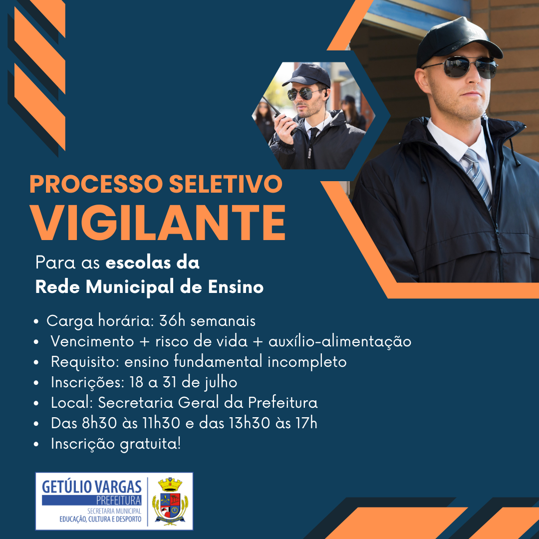Prefeitura de Getúlio Vargas abre processo seletivo para vigilantes com foco na segurança das escolas