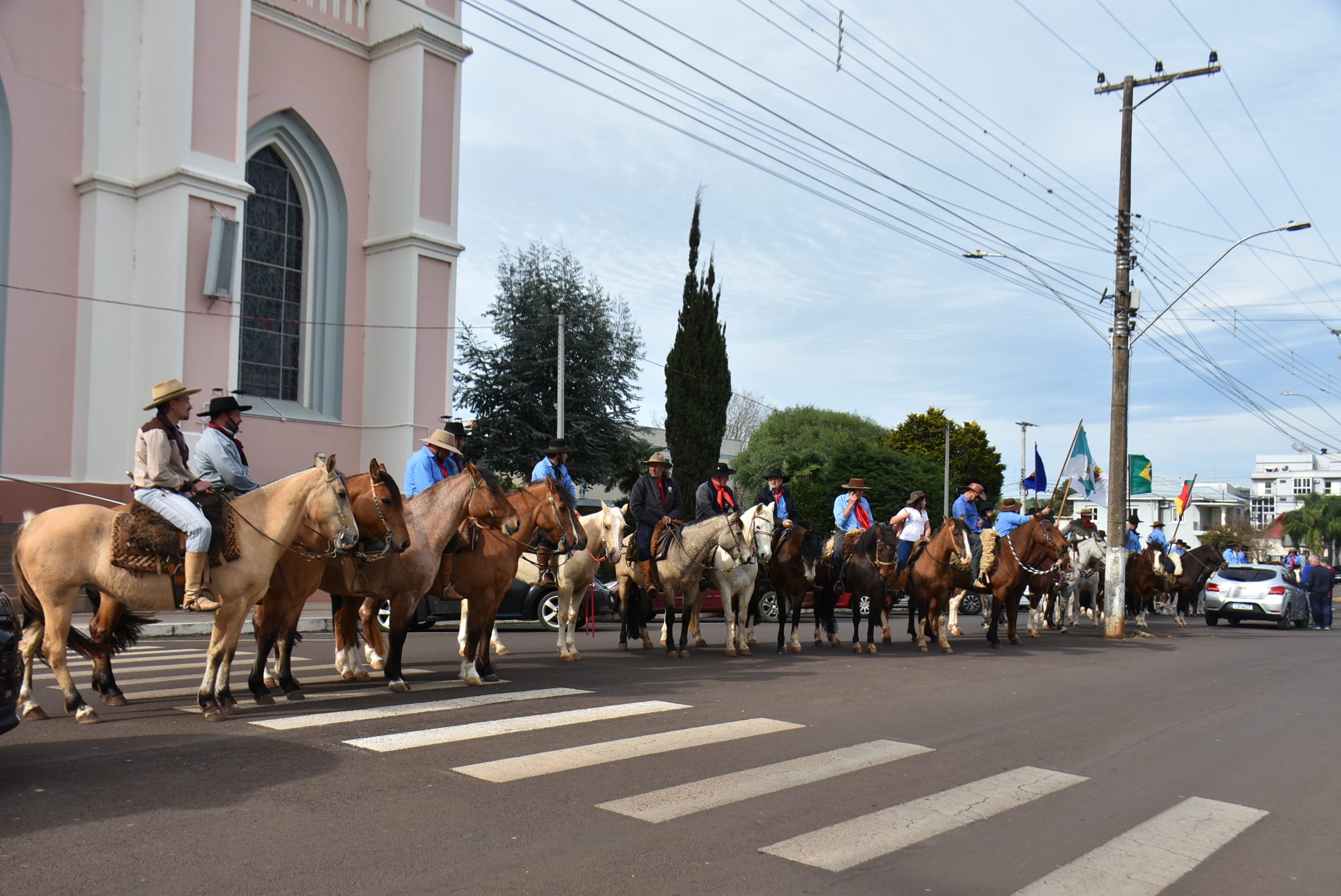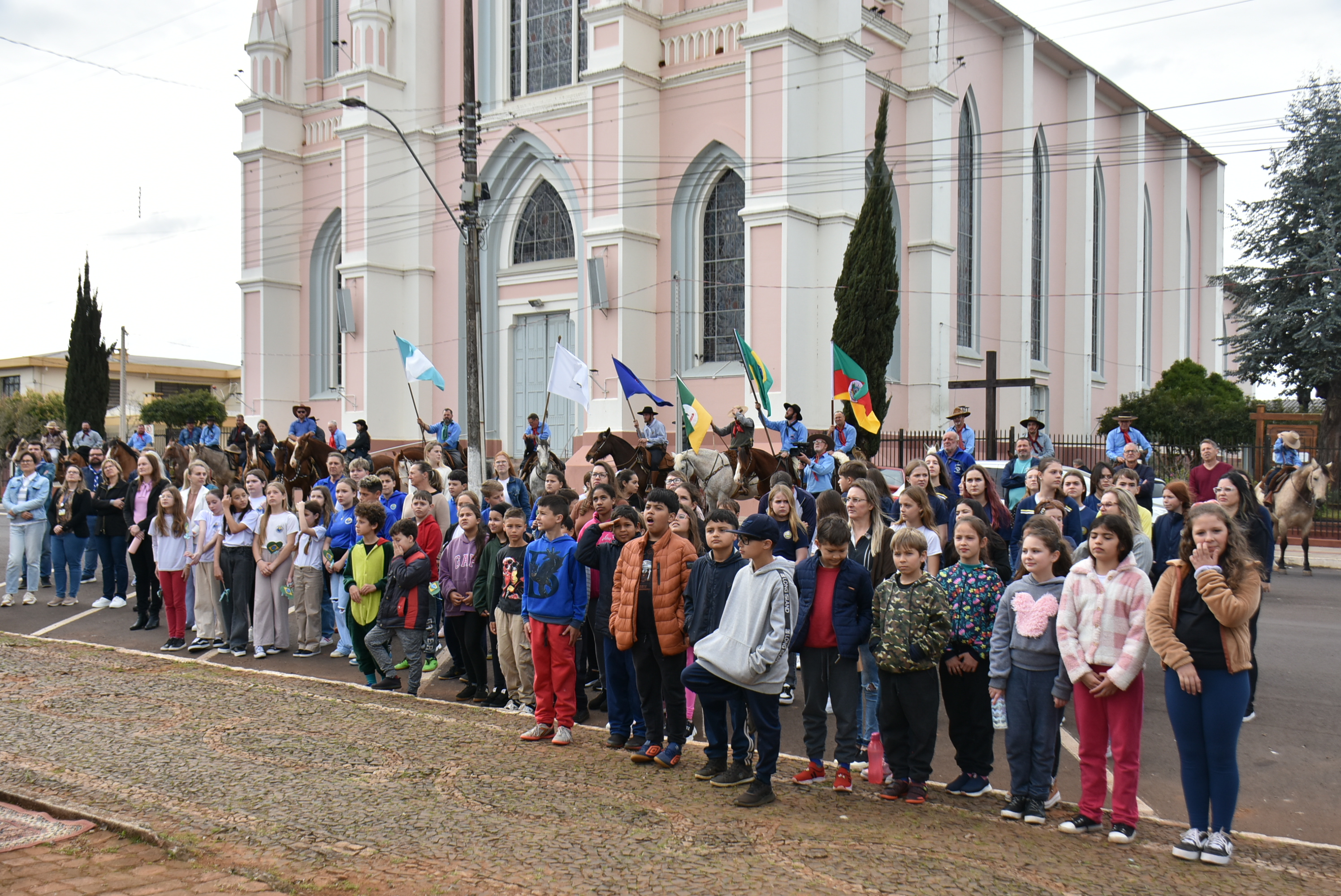 O ato iniciou com a recepção das lideranças locais e dos cavaleiros da 31ª Cavalgada da Integração. Participaram o vice-prefeito Dinarte Afonso Tagliari Farias, o presidente da Câmara de Vereadores Jeferson Karpinski, a secretária municipal de Educação, Cultura e Desporto, professora Luciane Spanhol Bordignon, o coordenador da 31ª Cavalgada da Integração, Geovani Aita, além de representantes da Brigada Militar, vereadores, diretores, professores, estudantes, escoteiros e a comunidade.